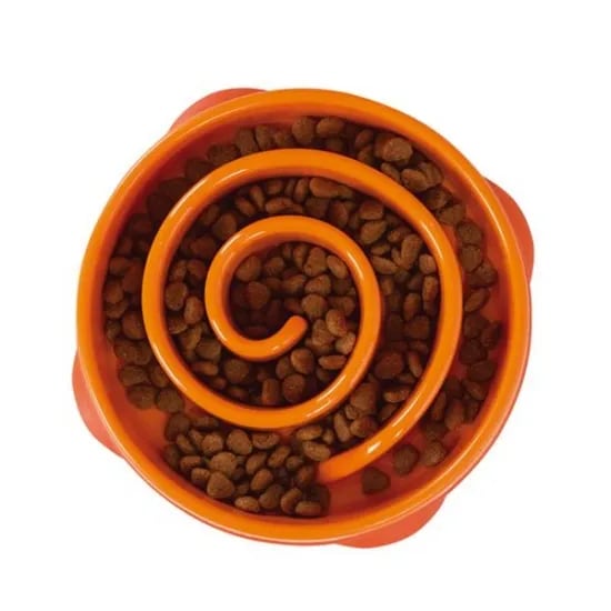 ファン&スロウフィーダーボウルは迷路のような壁や突起により、楽しい食事の時間を長く楽しむことができます。迷路のような突起が食べるスピードをスロウダウンさせて、食事の時間が約10倍を長く楽しめます。底面には滑り止めが付いているので、鼻先でボウルを押してしまうワンちゃんにもおススメです。